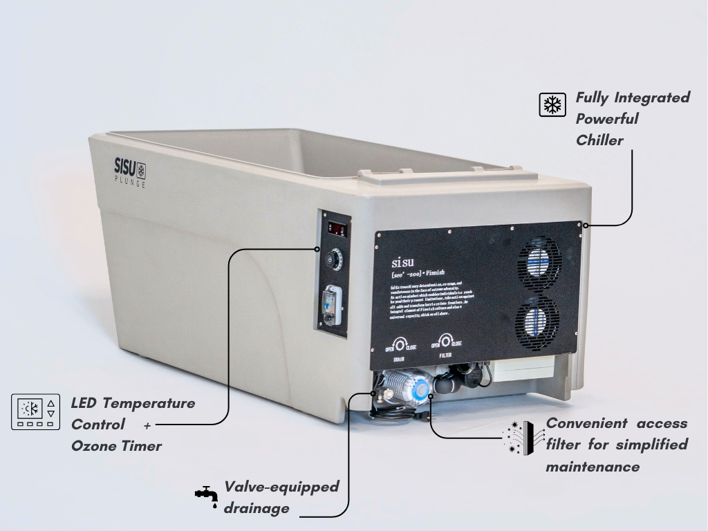 The All-in-One SISU Plunge boasts a sleek and modern design that complements any environment. Its quiet operation ensures a peaceful and relaxing experience, allowing you to focus on the rejuvenating power of the cold.